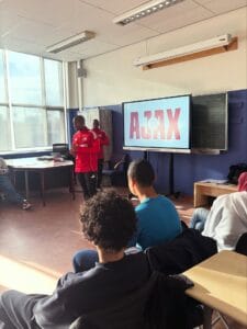 In samenwerking met de Ajax Foundation doen onze derdejaars leerlingen weer mee met het project S’Cool. Op zoek naar de kernwaarden van de school en leerlingen, om vervolgens een goed idee te bedenken om deze kernwaarden meer zichtbaar te maken in de school. Een jury – met o.a. de directeur en een Ajax coach – bepaald welke van de vier klassen mag strijden tegen andere scholen in Amsterdam om uiteindelijk 1500 euro voor de school te winnen!